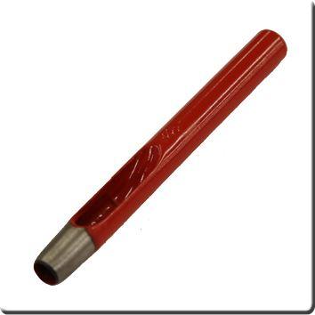 Locheisen zum Stanzen runder Löcher in weiche Materialien wie Gummi, Leder Kork, Pappe, etc.. Rot beschichteter Körper mit poliertem Rohr und seitlichem Auswurf der Ronde. Ein Henkellocheisen mit Ø10mm finden Sie hier►