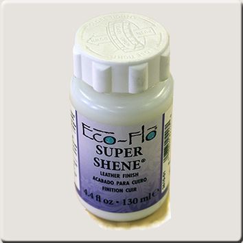 Eco-Flo Super Shene, ein sehr beständiges, wasserabweisendes Hochglanz-Finish auf Wasser- und Acrylbasis. Geeignet für natürliches vegetabil gegerbtes Blankleder oder Oberflächen die mit Lederfarben auf Wasserbasis gefärbt wurden.