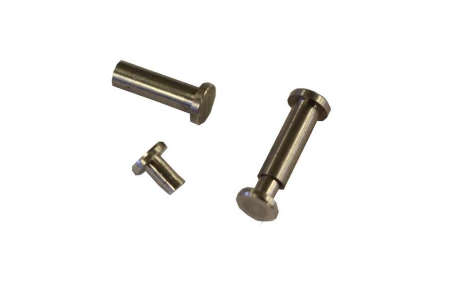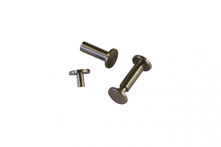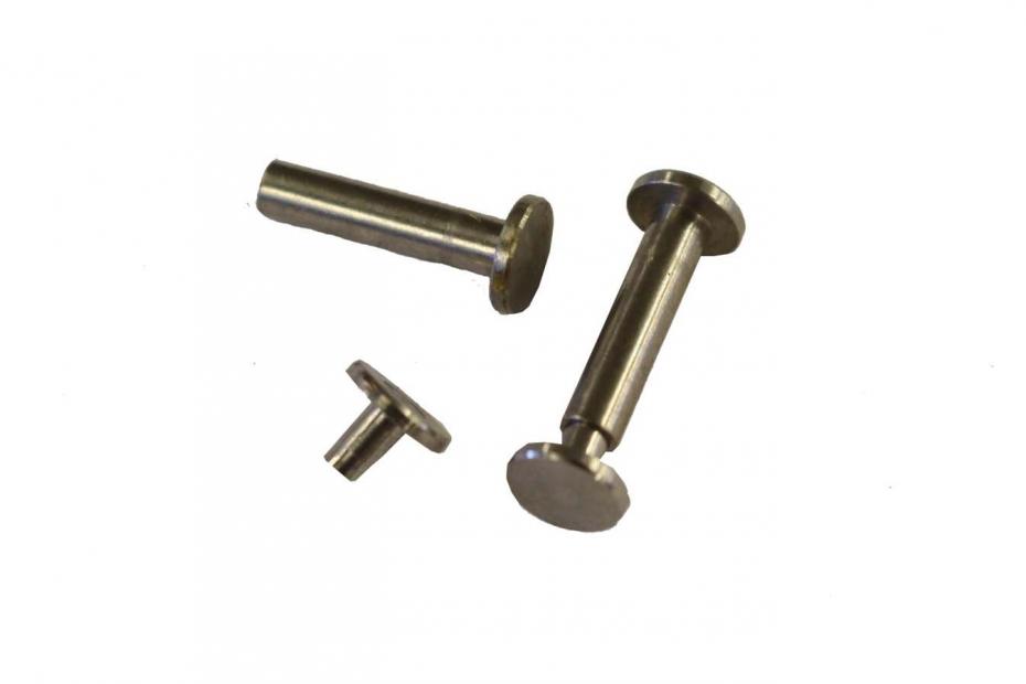 Unsere Griffnieten (auch cutlery rivets) aus Eigenfertigung dienen zum klassischen Befestigen der Griffschalen am Erl, wie es üblicher Weise an Kochmessern zu finden ist. Der Schaft geht durch Erl und Griffschalen; die Nietenköpfe werden entsprechend ihres Durchmessers in die Griffschalen eingesenkt. Die Griffnieten werden gemeinsam mit dem Messergriff verklebt und danach mit den Griffschalen bündig geschliffen. Der hohle Schaft kann entsprechend der Gesamtgriffdicke gekürzt werden.